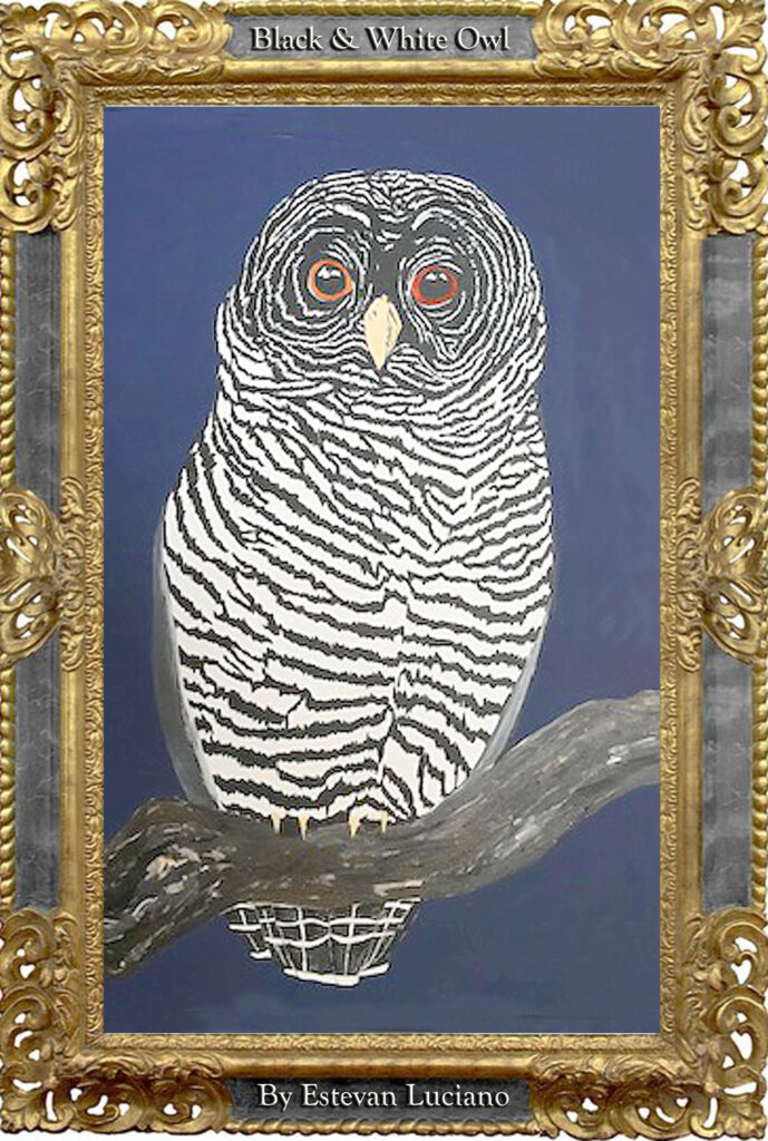 Black & White Owl by Estevan Luciano, 24×36, Oil on Camvas Read more articles Previous PostBlack Dancers by Myla J. 11×14, Oil on Canvas Next PostElephant by Estevan Luciano, Oil on Canvas, 36×48 You Might Also Like Birds of Paradice, by E. Luciano Oil on Canvas March 31, 2026 “Blue, Purple, Pink Poppies” Oil on Canvas by E. Luciano March 12, 2026 Girl in Storm by Amei Papitto, 24×36 March 30, 2026