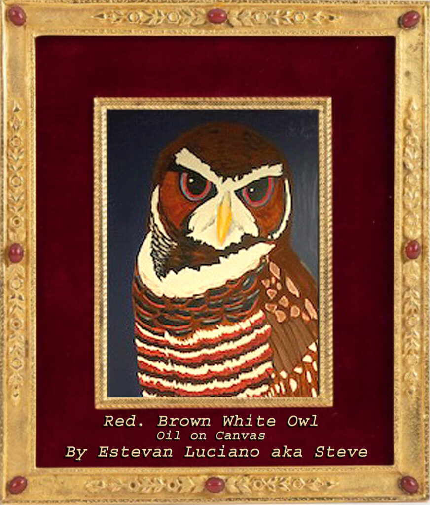 “Two Owls” Red, Brown, White Owls – Oil on Canvas by E. Luciano Owl #1 Owl #2 Read more articles Previous Post“Purple Dahila” Commission Work by Estevan Luciano- Oil on Canvas Next Post“Blue, Purple, Pink Poppies” Oil on Canvas by E. Luciano You Might Also Like “Purple Dahila” Commission Work by Estevan Luciano- Oil on Canvas March 12, 2026 Heart Man ll by Terry Hughes, Oil on Canvas 48×36 February 20, 2026 “Heart Man 2” by Terry Hughes, Oil on Canvas March 12, 2026